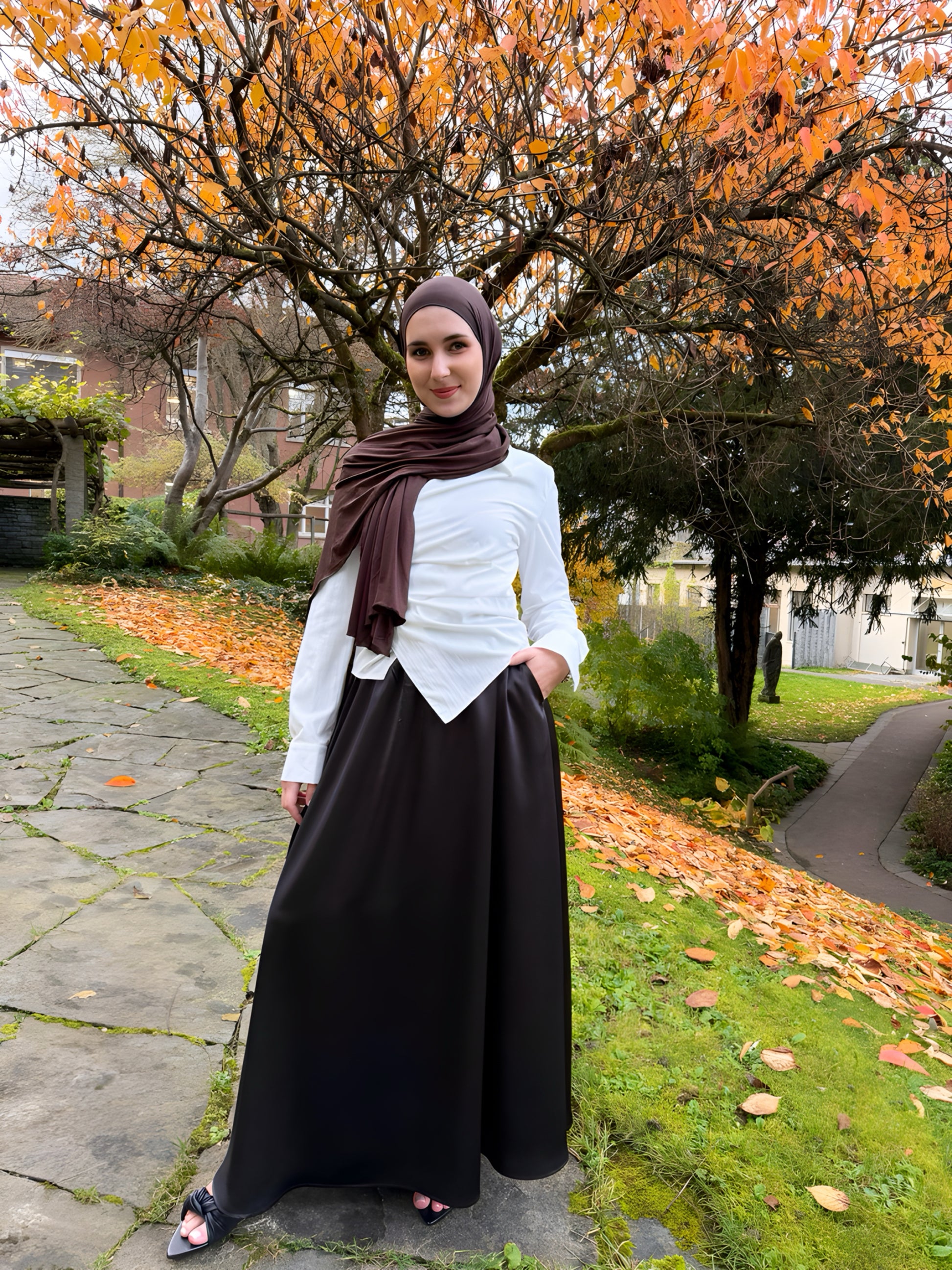 Einfarbiger Rock aus dickem, weichem Satin mit Taschen. Angenehmer Tragekomfort und ist Perfekt für deine Glam-Look! Zusammensetzung: Polyester (100%) Kollektion: Herbst/Winter 2025/2026