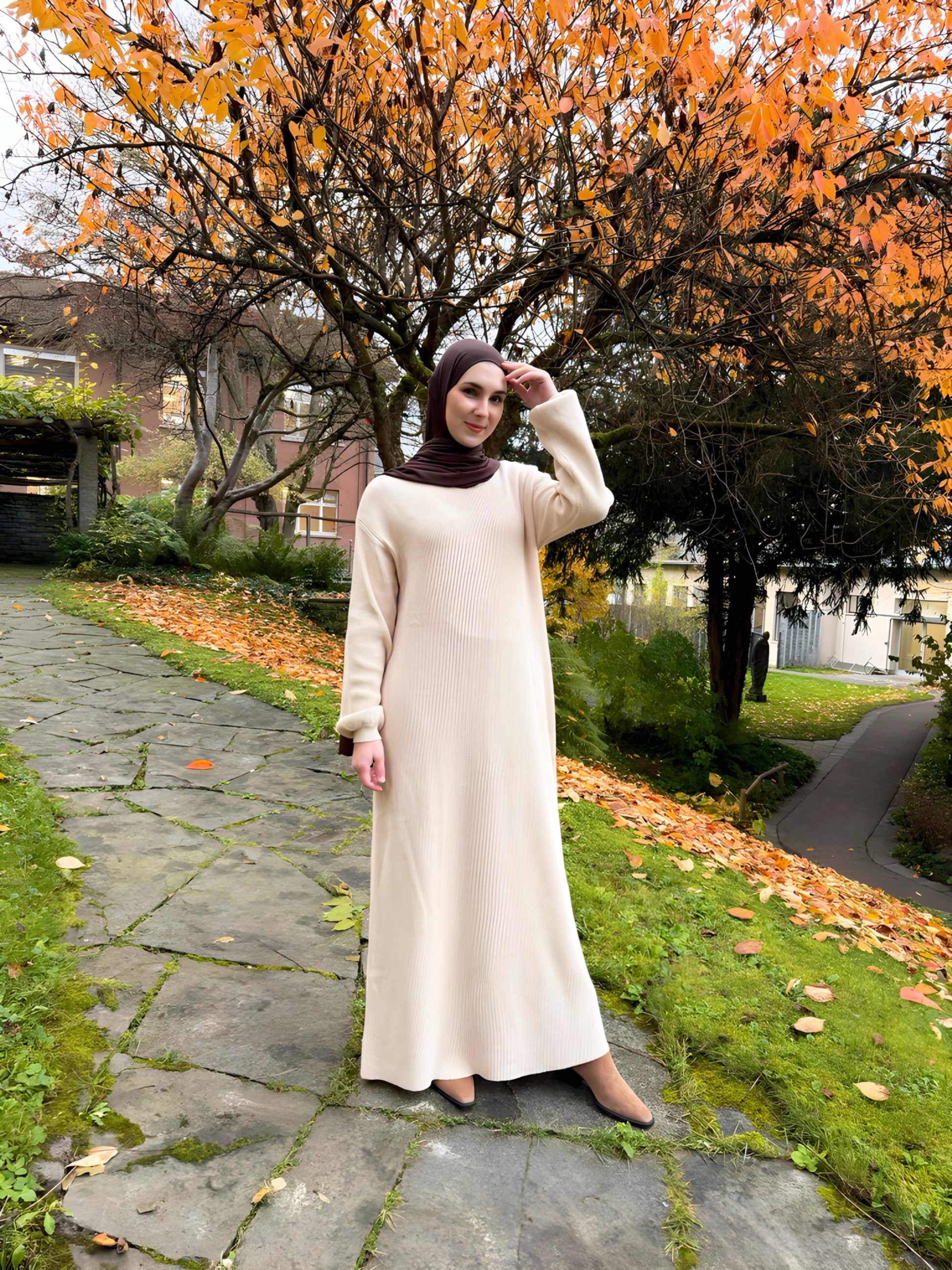Winterkleid im Abaya-Stil mit lockern Ärmeln für stilvollen, warmen Schutz. Aus weichem und bequemem Material gefertigt, eignet es sich perfekt für einen schlichten und raffinierten Look in der kalten Jahreszeit.